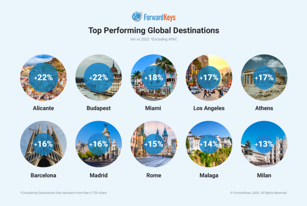 El informe de ForwardKeys que analiza las estadísticas sobre los destinos que captaron mayor atenci…